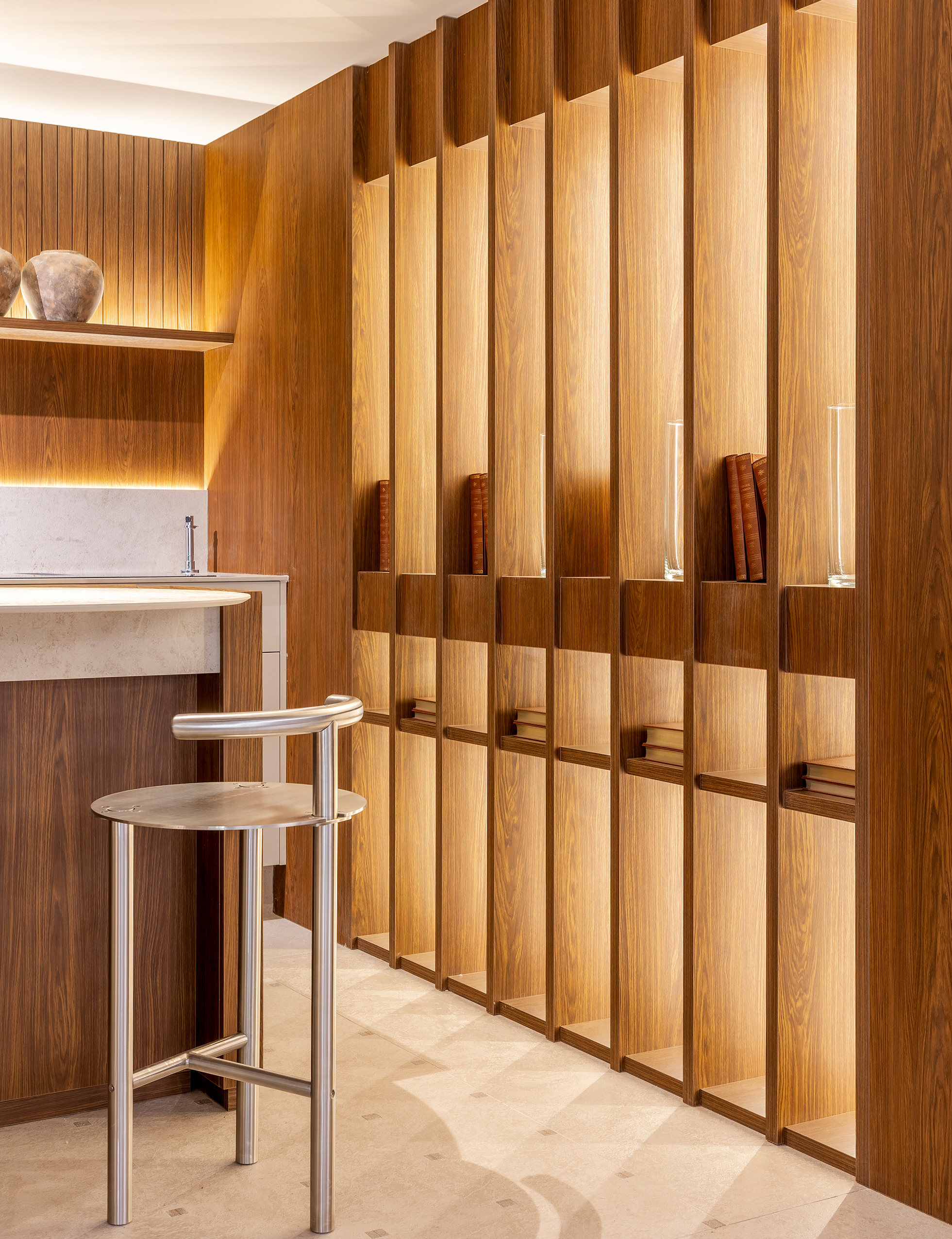 Neste projeto, a marcenaria sob medida executada pela Celmar não apenas acompanha o conceito, mas o potencializa. Cada plano, cada encaixe e cada acabamento são pensados para criar uma leitura contínua, onde forma e função coexistem de maneira fluida. Mais do que uma cozinha, o espaço se apresenta como uma experiência. Um ambiente onde o tempo é percebido com mais qualidade, e onde o design se transforma em parte essencial da forma de viver.