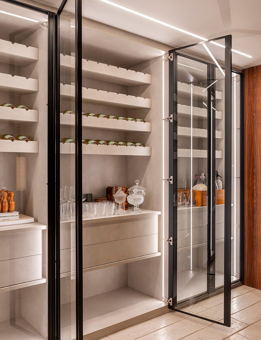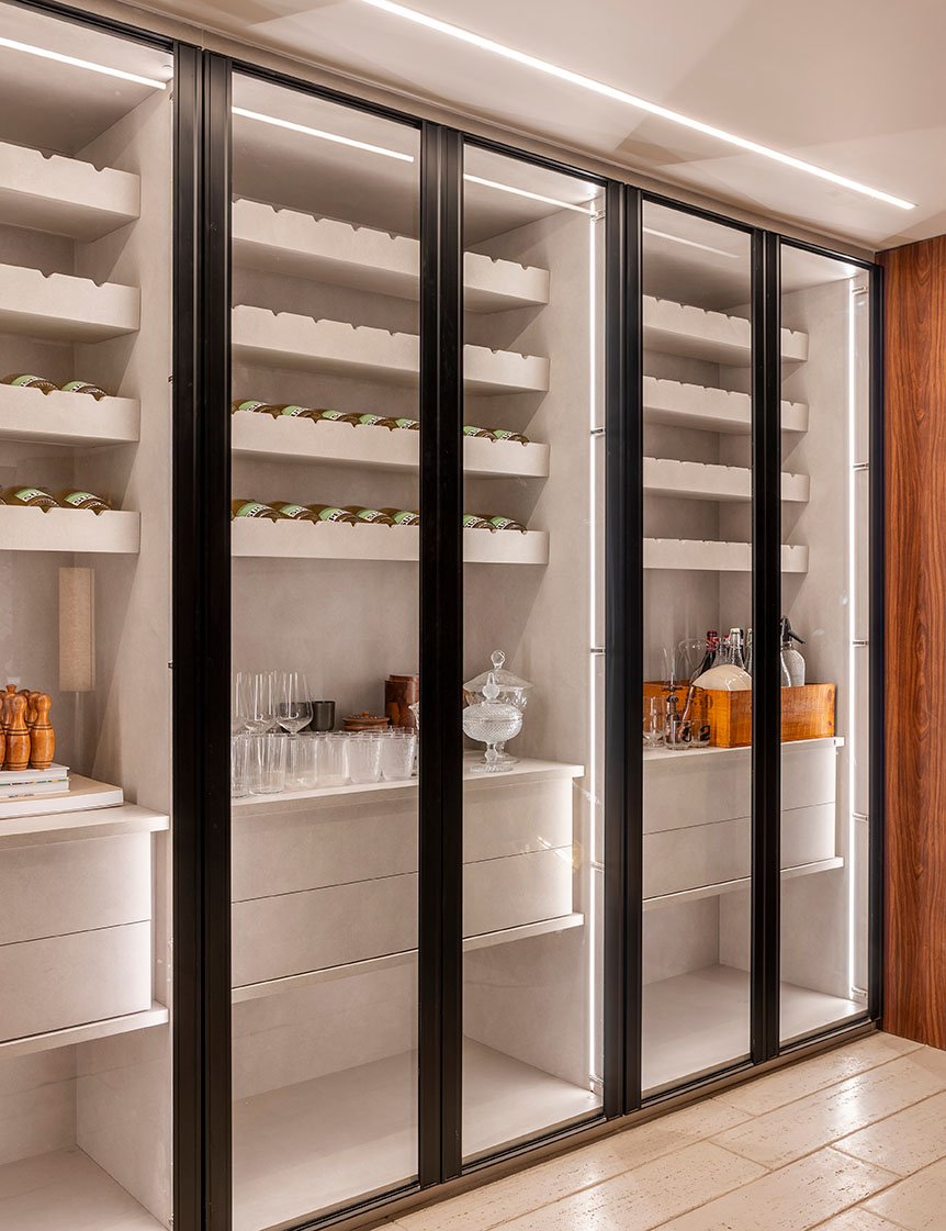 Com base em uma paleta suave e texturas acolhedoras, o espaço exalta o uso consciente da matéria, reforçando valores como simplicidade sofisticada, funcionalidade e afeto. A proposta de João é mais do que estética: é um convite a desacelerar. Marcenaria sob medida como parte da arquitetura Nesse contexto de refinamento e fluidez, o mobiliário Celmar surge como elemento estruturante da composição. A escolha pela marcenaria sob medida permitiu ao arquiteto explorar volumes limpos, proporções precisas e superfícies contínuas — resultando em um espaço onde nada sobra e tudo comunica.